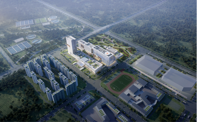 医院布局采用凤凰之形,内部围绕医疗功能整体科学布局,构建“医疗综合体(MedicalMall)”新医疗模式,将建设成为一家学科门类齐全、运行管理高效和特色突出的智慧化三级甲等综合医院。