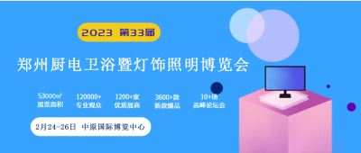 第33届2023中国郑州厨电、卫浴、净水博览会 同期:灯饰照明博览会 全屋集成吊顶博览会 时间:2月24-26日 地点:郑州·中原博览中心 3.6万平米、800品牌、8万观众