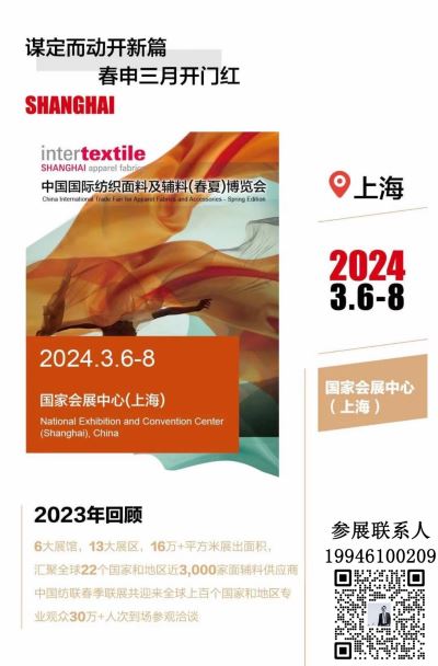时间:2024年3月6-8日 地点:上海国家会展中心 继续与PHValue针织展,CHIC服装服饰展和yarnexpo纱线展,intretextile-home家纺展五展联动同期不同馆举办 申请展位/搭建服务/调整/调剂 需要对接安排请随时联系,谢谢!! 参展联系:周先生(19946100209)